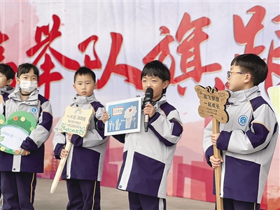 在一次家庭闲聊中,爸爸对妈妈讲:“心态好就能幸福。”旁边二年级的泡泡插嘴说:“不对,相信党,就能更幸福!”孩子的话让大家惊喜。二年级同学刚刚完成《我入队了》成长课程,戴上红领巾,成为一名光荣的少先队员。通过红色电影讲解开启对英雄的追寻;进入龙陵场馆,浸润式地体验“桃花林下学英雄”,在党团员教师手把手的辅导中亲近光荣的队组织,见证自己的成长。学生的学习成果《学英雄折叠小人书》作品也被特别安排在龙陵馆内展出。这是学校作为“全国未成年人思想道德建设”联系点,对一次仪式教育的迭代设计和实施,为孩子播下的“争做党的好孩子”的种子。