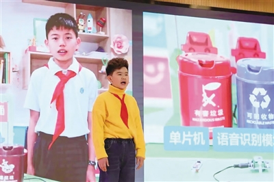 首届青少年综合素养展示活动在上海举行。“长大后我想当一名科学家。”来自高一的四年级获奖学生蒋承翰从小就是科学迷。在老师的指导下,他和团队的其他两位小伙伴运用学习成果,设计了智能语音垃圾桶。在参加市少代会展示时,他们的垃圾桶受到了市委书记李强的特别关注,还专门对高安路一小提出了“垃圾材质”的改进意见。当时高一队员带去参展的作品还有两件——空气琴和液压机械臂。看到队员能以勤巧的双手把奇思妙想变成现实的“小发明”“小创造”,市领导们纷纷点赞。李强更是寄语全体队员:“今天做祖国的好少年,明天做祖国的奋斗者”。