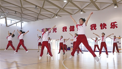 图为徐汇中学南校区的学生们开启新学期第一节体育课 朱亮 摄影报道