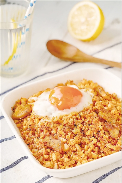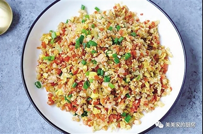 色香味俱全的各类特色炒饭是很多人的最爱,不过油盐碳水并重的“重口味”炒饭有时也像一颗热量“炸弹”,让人望而生畏。近来,一种无米炒饭在减肥族中悄然流行起来,无碳水的吃法颇受青睐。本期介绍几种炒饭做法,无论有碳水无碳水,都要好好吃饭哦。