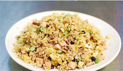 盛出装盘,撒上葱花,健康又美味的“减脂炒饭”就做好了。