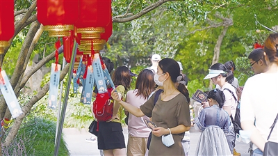 2021年,唐韵中秋在“诗意唐韵 秋水绕桂园”“浪漫唐韵 月满美罗城”“活力唐韵 花开蒲汇塘”三大主题的引领下,首次走出桂林公园,将节日氛围带到美罗城、快闪美术馆(花美术馆)、M+谊园,实现四地微游。今年,市民游客选择白天前往桂林公园猜灯谜、与唐韵美眉兔合影,欣赏桂林公园亭台楼阁中展现的海派古典之美。