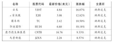 在美上市中概股10月15日收盘涨幅排行榜(前六位)