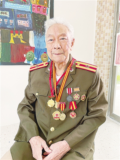 应志愿者的请求,当天陈斌将军装也随身携带了过来。草绿色的军服有些老旧,但却熨烫得笔挺,胸前还佩带了一排军功章。