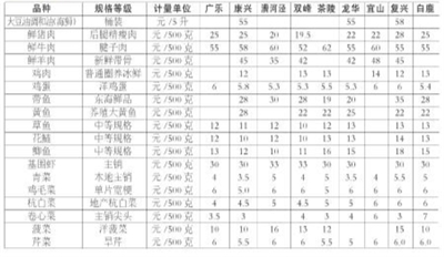 徐汇区主副食品价格一览