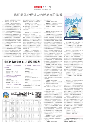徐汇区就业促进中心近期岗位推荐