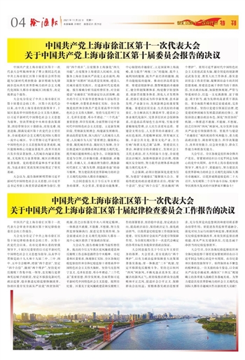 中国共产党上海市徐汇区第十一次代表大会关于中国共产党上海市徐汇区第十届委员会报告的决议