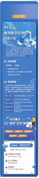 2020年11月,《中共中央关于制定国民经济和社会发展十四个五年规划和二三五远景目标的建议》中,针对教育提出“建设高质量教育体系”,如何建设高质量教育体系成为时代的命题。2021年11月17日,上海市教育数字化转型实验区方案发布会上,徐汇区发布教育数字化转型实验区方案。徐汇区将按照“整体性转变、全方位赋能、革命性重塑”的要求,发挥区域教育优势,力求从技术、制度、生态、文化、思维等方面,实现全方位多维度的跨越发展,大力探索教育数字化转型的示范路径。