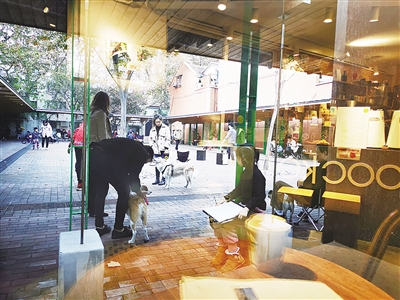 下午四点,晒太阳和遛狗的人群渐次离开,咖啡店店员收起了座椅,大家默契地让出了这块场地,四面围合的口袋广场转眼成了孩子们放飞自我的游乐场。