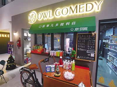 THE BOXX徐家汇其实远不止是一个小剧场。记者在现场看到,这里有线上预约的健身品牌“超级猩猩”,也有颇具复古设计感的小卖部,还有圈内知名的录音棚;复合使用的空间还是喜剧工作室和编曲工作室,可以随时录制音频节目,还有脱口秀演员招募、培训和孵化的舞台。年轻人如果对脱口秀创作和表演感兴趣,“开放麦”就是一个新人新作的实验场。