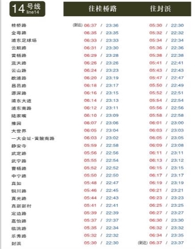 时刻表颜色解读: 红色时刻为首班车时间/蓝色时刻为常态末班车时间