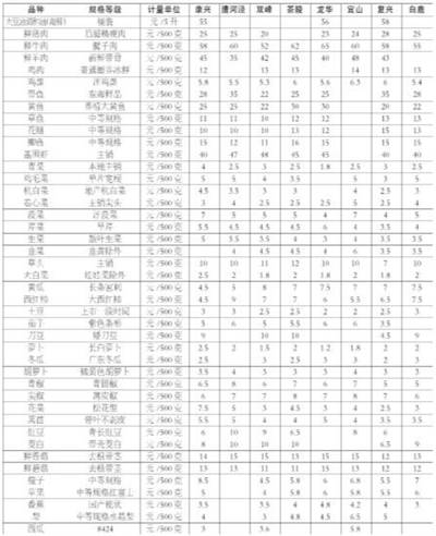 徐汇区主副食品价格一览