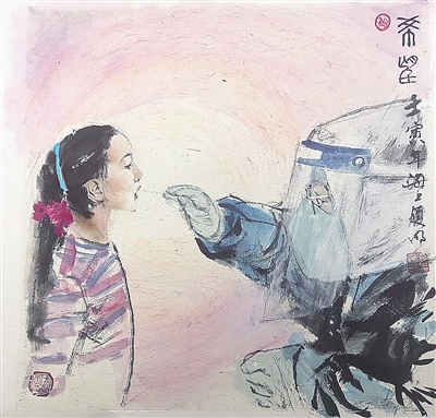 《徐汇报》《新民晚报》上刊登的一篇“徐汇区书画协会用特别方式助力防疫工作”报道,更是引起了热烈的社会反响,先后被上海徐汇、徐汇文旅、腾讯网等新媒体转发,同时会长陈峨还接受了央视网的采访报道……