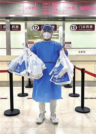 在小区封控期间,看病配药成了难题。为解决居民求医问药的困难,在闭环管理前期,由曾经参与援鄂医疗的护士洪姝牵头,张怀信等几名医务工作者自发组建了一支社区医护小队,为腿脚不便的居民送药、帮长期化疗的患者维护PICC导管、时刻关心即将临产的准妈妈,积极开展一些力所能及的医护工作。平时素不相识的邻居,在这一刻,组成了一个大家庭。
