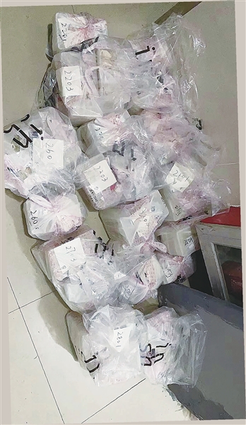 小区很大,光张怀信所在的楼就有一百多户,每次团购的数量很大。有一次团购馄饨的时候(如图④),居然达到了近500份。团购过程非常不容易,物流师傅凌晨三点配送到小区,从卸货、运输、分装,志愿者们都仔细规划,经过两个半小时的共同努力,顺利将馄饨送到每一户居民的手中。
