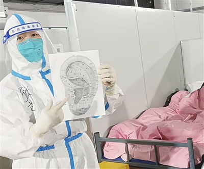 “耳朵上有一些五脏六腑的反射区,当脏腑有病变的时候,就会有压痛点。”一堂耳针治疗的中医养生课在漕宝路方舱医院开讲了,正在讲解的是山东省援沪医疗队员、山东中医药大学附属医院副主任医师张效丽。她示意大家看耳朵穴位的示意图:“失眠的话就找到神门穴,进行反复按压按摩,达到预防和治疗疾病的目的。”