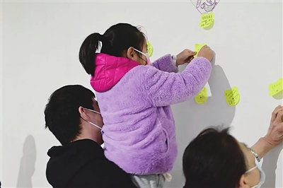 “风雨之后,必见彩虹!”“早日脱单,疫情滚蛋!”“上海快点好起来吧!”14日,漕宝路方舱的1楼空白墙面上,布置出了一面温馨的许愿墙。黄色的便签纸写出了大家的期待,“许愿墙”三个花体字里还细心地写了“没有一个春天不会来到”“加油”等字样,许多患者走过都忍不住驻足观望。