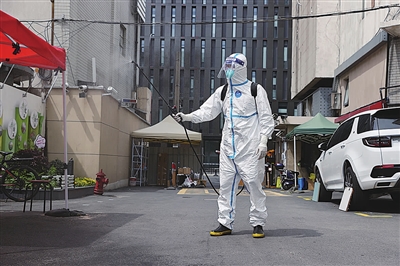 4月9日,徐汇区消防救援支队组建了一支由17人组成的“防疫消杀小分队”,承接徐汇区疾控中心部分消杀任务,主要对阳性患者转运后的居住环境进行消杀。