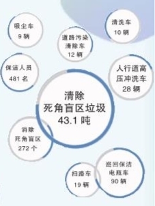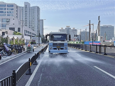 冲洗行动前,对道路进行全面清 理并清空道路废物箱。开展清死角、 消盲区、大冲洗行动。