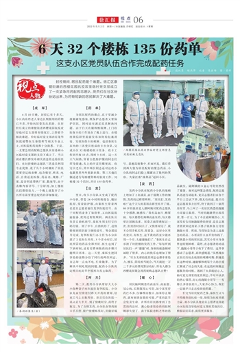 封控期间,居民配药是个难题。徐汇区康健街道的西樱花园抗疫攻坚临时党支部成立了一支紧急用药配购志愿队,党员们在社区纷纷站出来,为药物短缺的居民解决了大难题。
