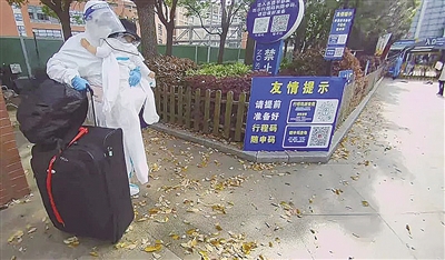 4月17日,湖南所执法办案队队长王晨身穿“大白”,在复兴中路某弄走访时了解到,有一名身患多种基础疾病、瘫痪在床的八旬老人刘老伯,最近一次核酸结果检测呈阳性,儿子被隔离在浦东,120因运力紧张只有一名司机到场,也无法开进弄内;楼道狭窄,担架也无法施展开。王晨得知后二话不说,登上又窄又高的楼梯,将老人从床上背起,从四楼缓步背下楼送上120救护车顺利转运至医院。