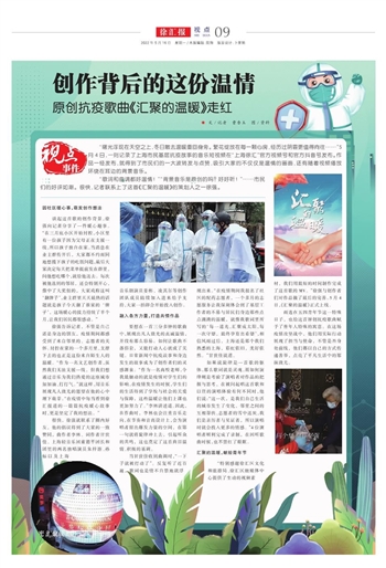 “特别感谢徐汇区文化和旅游局、徐汇区融媒体中心提供了生动的视频素材,我们用最短的时间制作完成了这首歌的MV。”徐强与创作者们对作品做了最后的完善。5月4日,《汇聚的温暖》正式上线。