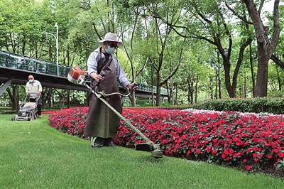 (1) 5月23日,在徐家汇公园,工作人员正在清除杂草。