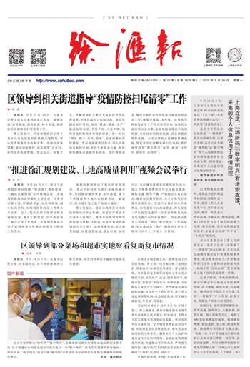 本报讯 5月22日、23日,区委书记曹立强先后来到徐家汇街道、康健街道、田林街道、湖南街道、斜土街道,调研指导疫情防控扫尾清零工作。