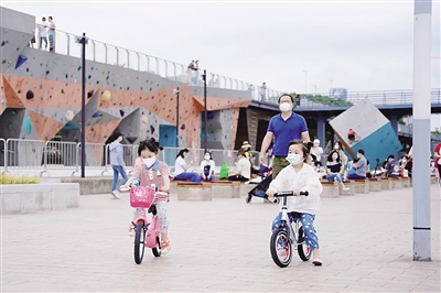 9时30分,江风徐徐,徐汇滨江亲水平台,传来孩子们欢快的喊声。