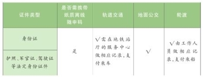 持纸质离线随申码+身份证,可乘坐轨道交通、地面公交、轮渡。