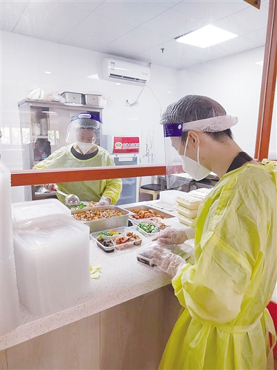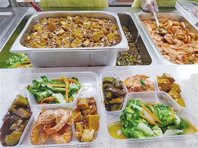 社区食堂复工后,每日提供午餐350客左右,晚餐150客左右,外卖100份左右;双休日午餐270客左右,其中送餐上门120客左右。每天会根据情况及时作相应调增或调减服务。