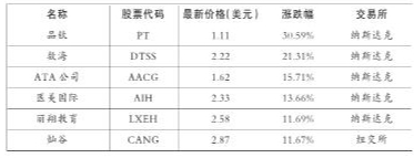 在美上市中概股7月22日收盘涨幅排行榜(前六位)