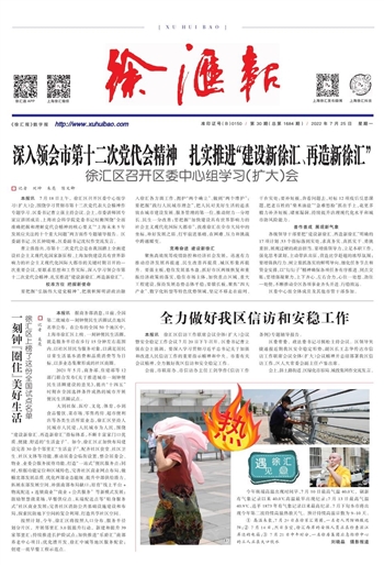 徐汇报一版要闻01一刻钟“圈住”美好生活 2022-07-25 2 2022年07月25日 星期一