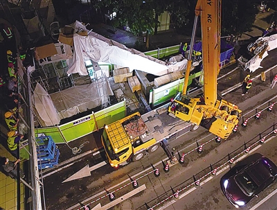 7月17日晚上23点,在徐汇区交警部门的大力配合下,工人们对肇嘉浜路两侧加装的两部自动扶梯进行吊装作业,经过近5个小时的紧张奋战,最终在7月18日凌晨4点前顺利完成了自动扶梯的主体吊装工作。