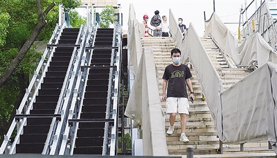 记者注意到,天桥上不少市民来来往往,在炎热的夏季顶着烈日踩着一层层的阶梯走上天桥实属不易,特别是上了年纪的老年人,没走两步就要停下来歇息一会。看到刚刚吊装完成的自动扶梯,路过的市民总会探头望望,期盼的眼神呼之欲出。