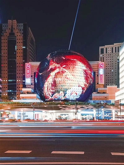 作为全球首个裸眼3D球幕,7月25日晚,徐家汇地标美罗球再度展现了“美罗元宇宙”的魔幻一面,将艺术作品通过球幕投射出立体动态效果,让市民在夏夜逛街时,也能欣赏到炫目的艺术画作。