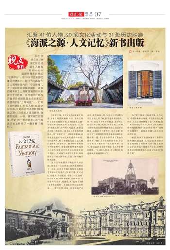 据悉,徐家汇街道和徐家汇源景区将围绕《海派之源·人文记忆》新书在今年上海旅游节期间推出作者线上系列公益讲述、微信专题推送等活动,以吸引更多读者和游客深入走进百年前的“海派之源”。