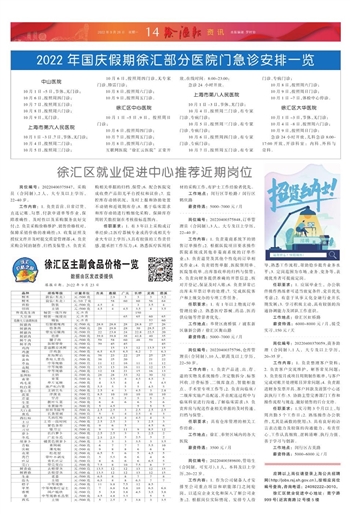 2022年国庆假期徐汇部分医院门急诊安排一览