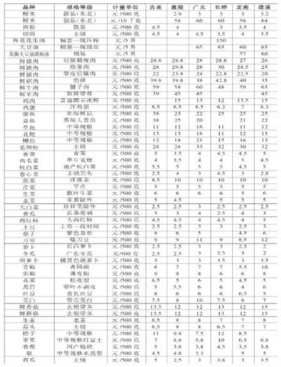 徐汇区主副食品价格一览