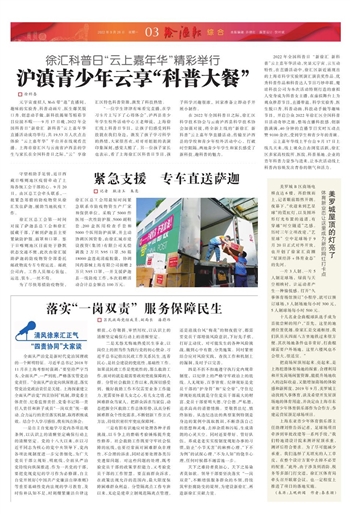 在2022年全国科普日之际,徐汇区科学技术协会与云南泸西县科学技术协会加强对接,将全新上线的“新徐汇 新科普”云上嘉年华直播活动,传输至泸西县的学校和青少年校外活动中心,打破时空阻隔,两地青少年学生和家长感受了新科技、趣科普的魅力。