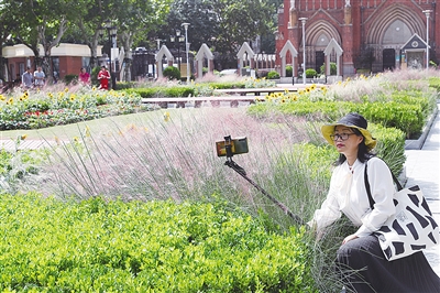 徐家汇天主教堂前的绿化地带已被粉黛乱子草包围,左右两边的粉黛乱子草超过一半已经绽放,“粉色浪漫带”初具规模。如此美景自然引来市民游客驻足欣赏,拍照打卡。 刘晓晶 摄影报道