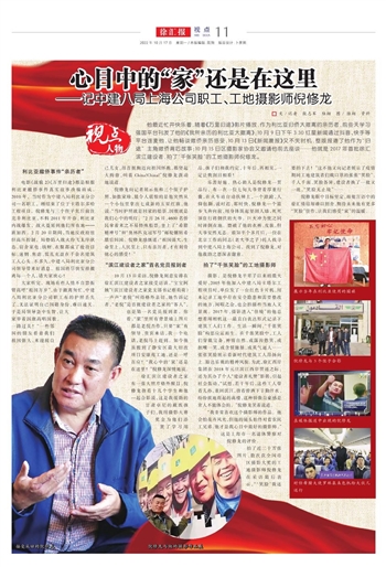 他最近忙并快乐着,随着《万里归途》影片播放,作为利比亚归侨大撤离的亲历者,前些天学习强国平台刊发了他的《我所亲历的利比亚大撒离》;10月9日下午3:30红星新闻通过抖音、快手等平台连麦他,让他畅谈撤侨亲历感受,10月13日《新闻晨报》又不失时机,整版报道了他作为“归途”主角撤侨背后故事;10月15日区摄影家协会又邀请他前去座谈……他就是2017年首批徐汇滨江建设者,拍了“千张笑脸”的工地摄影师倪修龙。