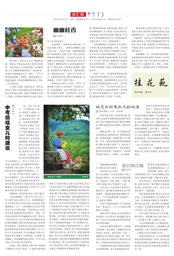 做桂花年糕,第一步当然就是要去收集桂花。新鲜的桂花,米粒般的花蕊,微黄的花瓣,浓郁的香气令人陶醉。首先,我们会把花梗和杂物拣取掉,把桂花在筛子里筛一下,然后把干净的桂花放在碗里待用。外婆会把长条形的年糕切成一块块薄片,再在锅里煮熟,放在另一个碗里。这个时候,桂花年糕的精华部分就要来了,外婆会开油锅炒白糖,油锅里要加入足够多的白砂糖进行翻炒。等白糖炒到一定程度,外婆把年糕片倒入锅中一起炒,用铲子翻滚,让每一面都均匀裹上糖衣。在翻炒的时候,甜腻的香味会显得越来越浓厚。这时,撒上一些桂花,小小的花瓣点缀在年糕片上,像是白玉上的立体花纹。直到糖浆开始呈现焦黄的色彩,桂花年糕就可以出锅装盘了,实物的香气和桂花香气融合在一起,让人食指大动。