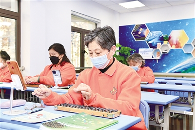 这是大多老人的“心结”。据华泾镇社区(老年)学校常务副校长郭玮介绍,课程刚刚推出的时候,招收到的学员不足10人。有些老年人认为,都退休了,还有必要学习“打算盘”么?还有一些老年人听说要“做题目”,更是望而却步。学校一边坚持建设课程,一边推广成果,与上海市珠算心算协会共同编写了《珠算心算》教材,课程建设内容丰富、形式多样、与时俱进,学员们还自编了算盘舞、算盘操,通过巡讲、表演的形式,持续不断地推广珠心算课程。从最初不足10人的小班级,发展到如今拥有近千名学员,课程被推广到全国16个省市地区,每年组织学员参加海峡两岸珠算通信比赛,开展两岸珠算文化交流活动。