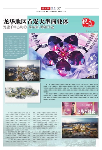 龙华寺是上海历史最久、规模最大的古刹,也是上海文脉发源地之一,龙华也是上海唯一以千年为时间单位的历史风貌区。作为龙华板块首发的城市级商业综合体,上海龙华会即将成为沪上首座对望千年古刹的街区商业。日前,上海龙华会项目发布会透露,以“观此新生,妙想未来”为定位,这座兼容民俗故事、文化碰撞、青年潮流、绿色生态的复合型开放场域,预计将于明年第三季度开业。