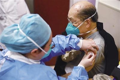12月15日上午,92岁高龄的中国工程院院士、复旦大学肝癌研究所名誉所长、复旦大学附属中山医院终身荣誉教授汤钊猷来到复旦大学附属中山医院接种点,准备完成自己新冠灭活疫苗第三剂次的接种。