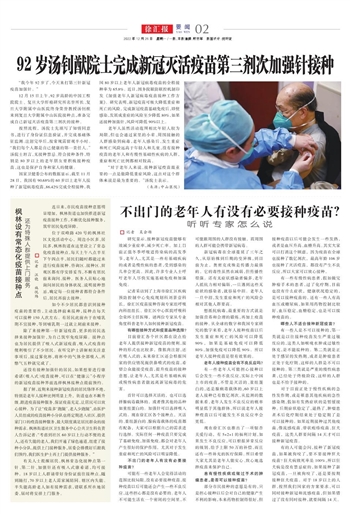 92岁汤钊猷院士完成新冠灭活疫苗第三剂次加强针接种