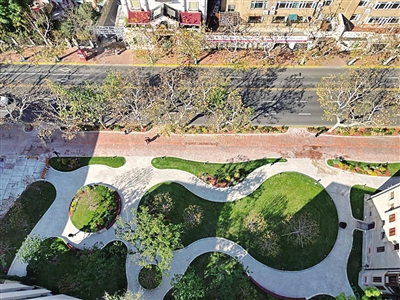 吴佩雯指着校园内一幢德式风格的老建筑说:“本来我们只能看到它的尖顶,现在可以看到全貌了。人行道上的花箱也变成了与路面齐平的植物,很有野趣。现在这里是网红景点,经常看到朋友圈有人特地来拍照。”