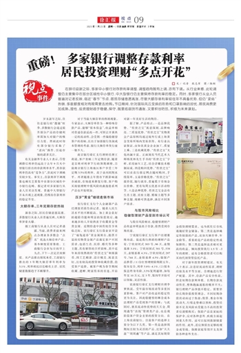 南京银行徐汇支行理财经理王莉说,客户青睐三年定期存款,随着老百姓对利率下行的预期调整,目前南京银行上海地区客户享受三年定期3.5%的利率,高于业内同期水平。再者随着去年债市下跌影响逐步减弱,市场迎来修复行情,客户购买南银理财中低风险的鑫逸稳系列产品也开始增加。