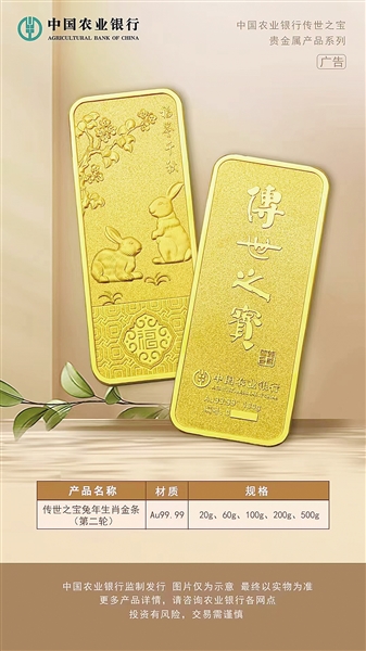 农行徐汇支行个人金融部产品经理张君漪告诉记者,随着人民生活水平的不断提高,加上黄金良好的避险功能和明显的保值效应,越来越多的人开始热衷于收藏黄金等贵金属。近期恰逢中国传统佳节来临之际,农行徐汇支行营业室开设了“福兔迎春”贵金属展台,提供丰富的实物贵金属产品满足客户不同需求,包括生肖、民俗、婚庆等多种主题,具有浓厚的吉祥韵味,其中近年来持续热销的“传世之宝”和熊猫币,因工艺精湛、设计精美、寓意美好,且有较高的投资和收藏价值,倍受客户追捧,被客户视为春节期间收藏、遗赠、财富传承的首选,开启对新一年美好生活的期待。